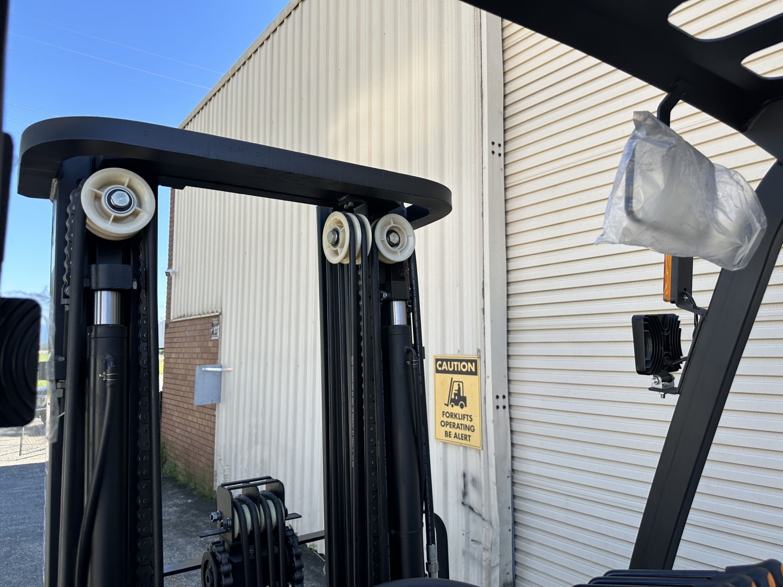 • 3 Stage Mast – Max Lifting Height 4.5m – Reach 1.5m higher than the Standard Package 2 stage mast – perfect for factories and warehouses making the most of their available storage space AND at the same time reduces the forklift height, allowing your forklift to fit inside a container and unload direct from there which is desirable for resell value