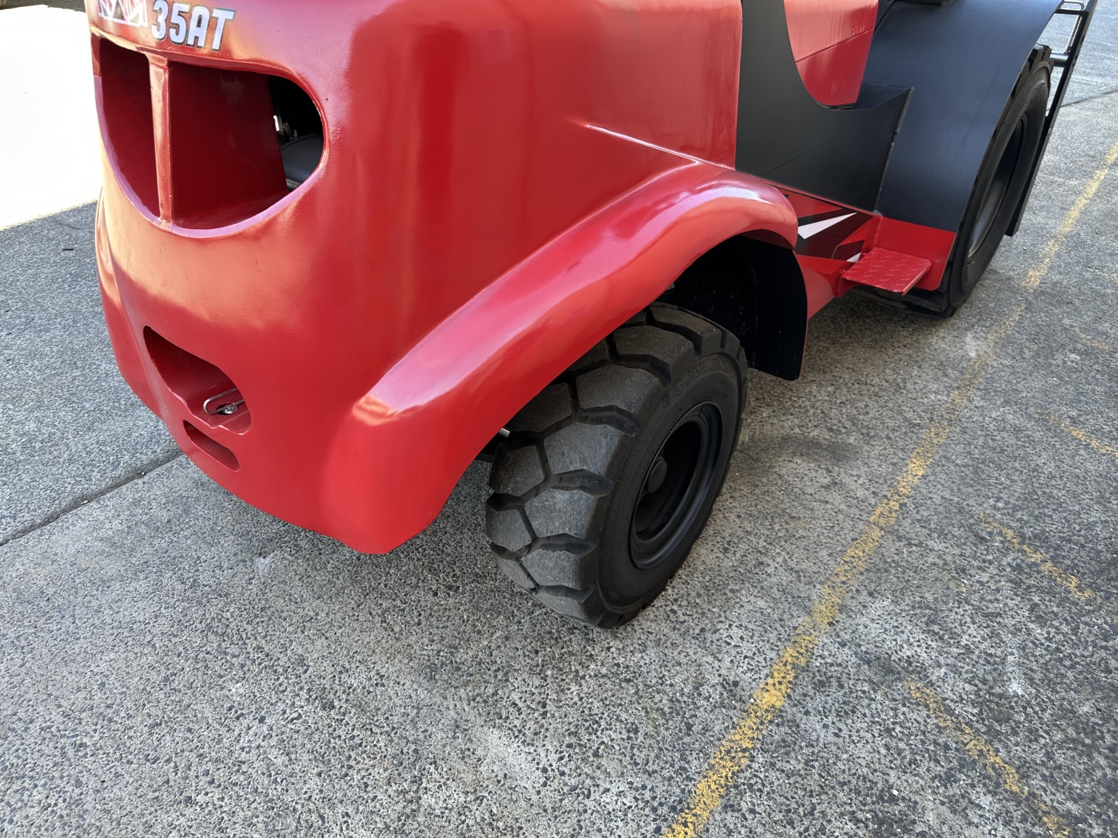• Total Weight 4.7 ton – The 4.7 ton total weight means your forklift can handle 3.5 ton max loads steadily at this speed and power with no issues with excellent counter balance